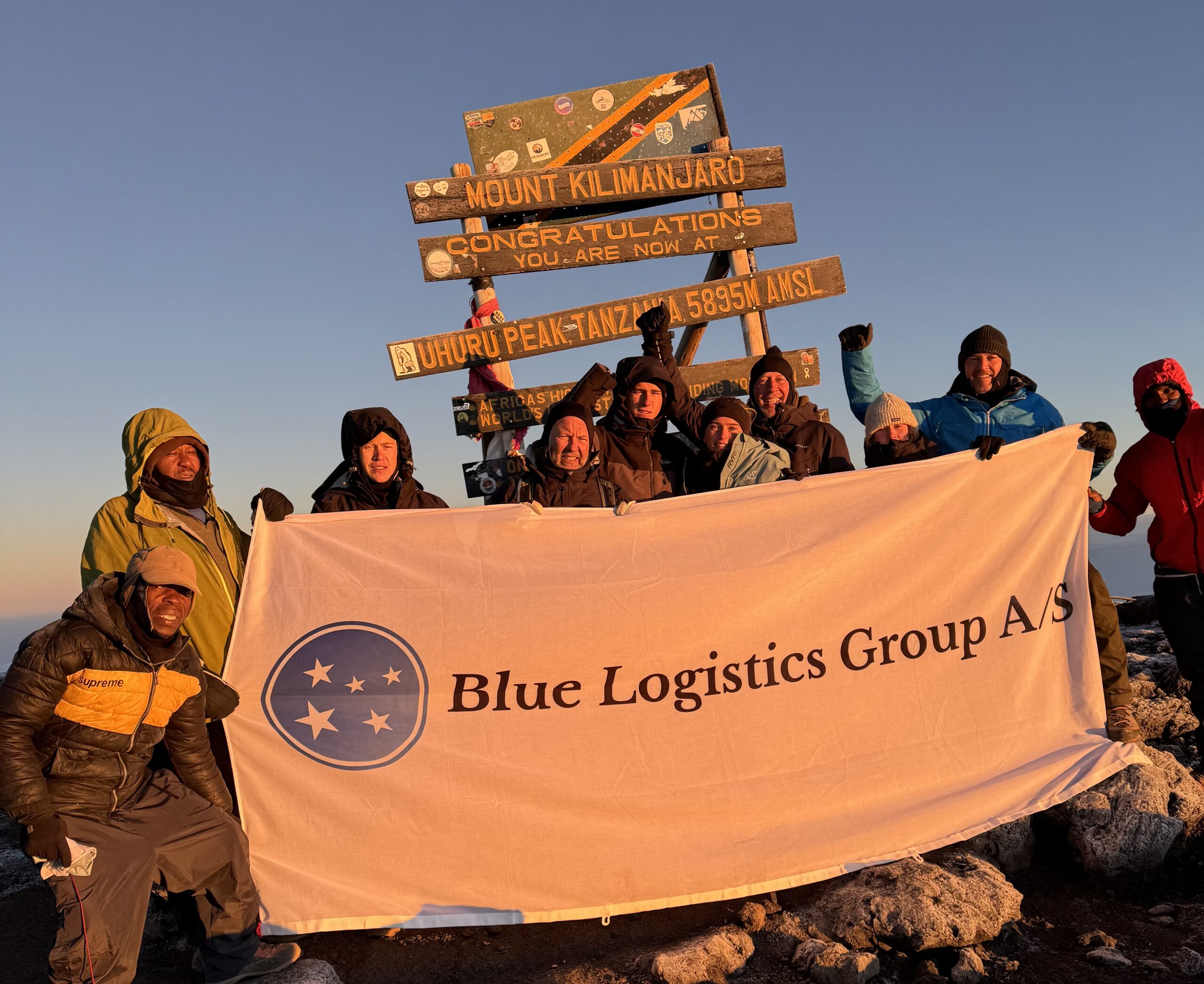 Blue Logistics Group at Uhuru Peak, Kilimanjaro – 5,895 m above sea level – and Africa's highest point: A symbol of strategic ambition and next step – thus the summer has been spent placing Blue Logistics' brand atop the African continent. Here Blue Logistics Group places its mark and the beginning of a new and ambitious journey.